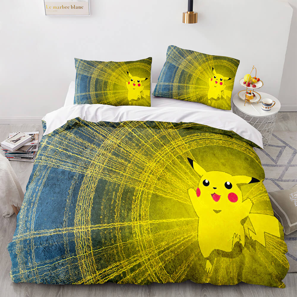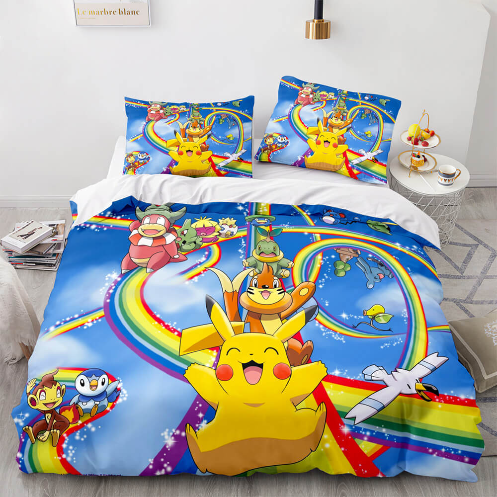 Cartoon Pokemon Pikachu Kids Bedding Set Quilt Duvet Cover Bed Sets